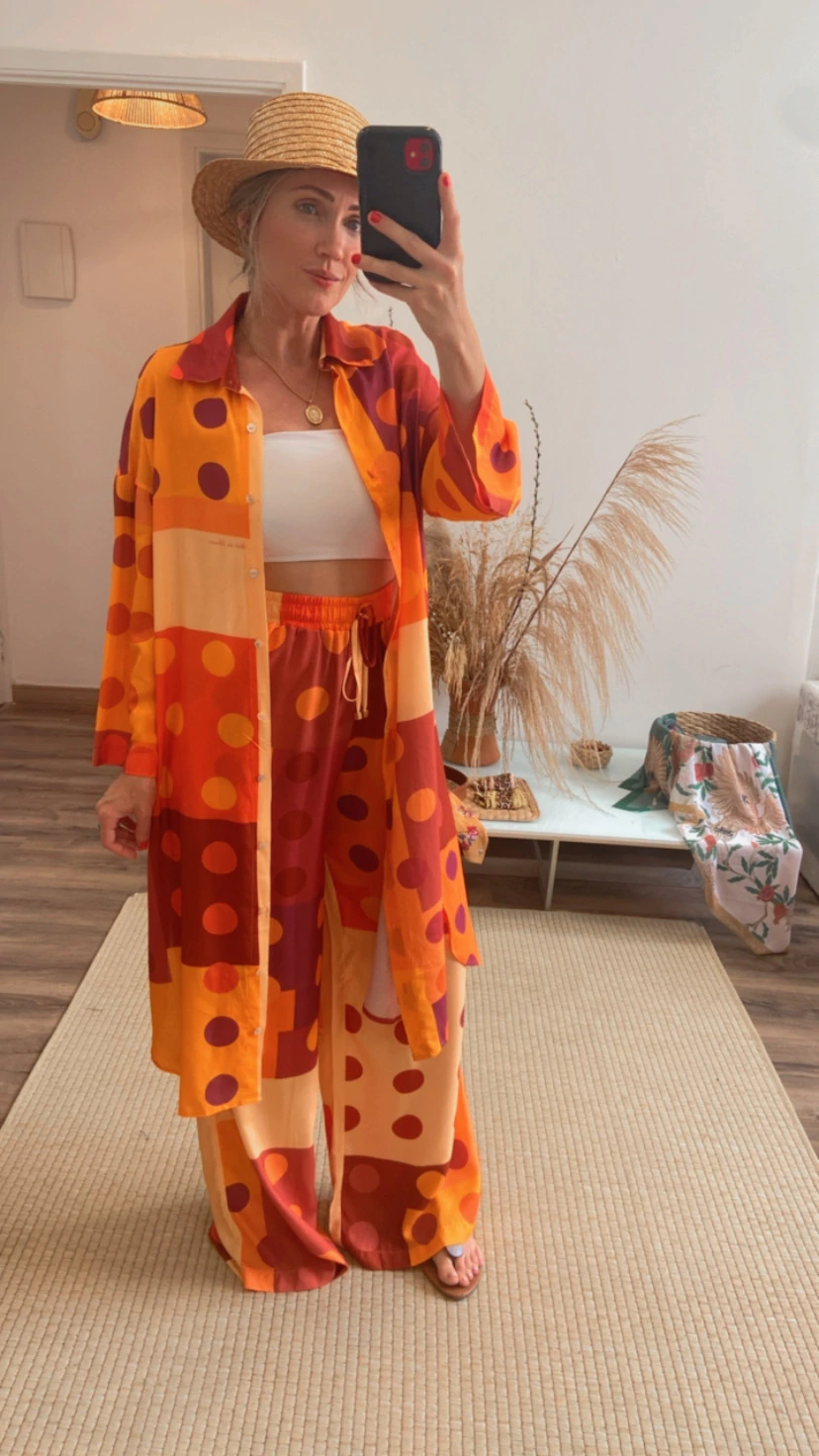 Conjunto de Calça Pantalona com Vestido Chemise Poá Color